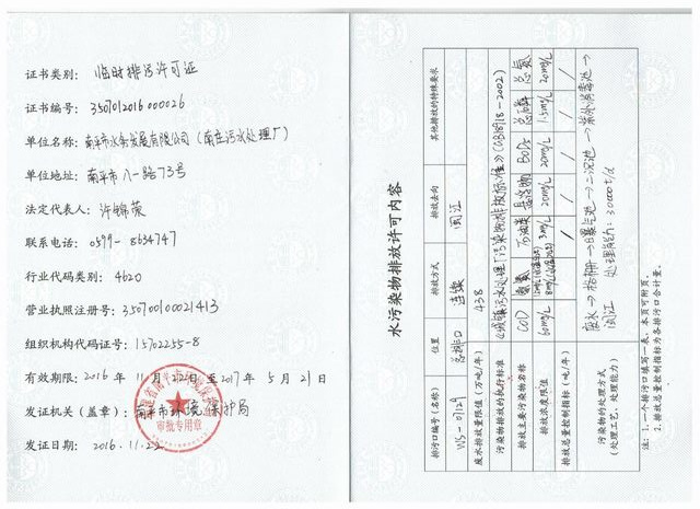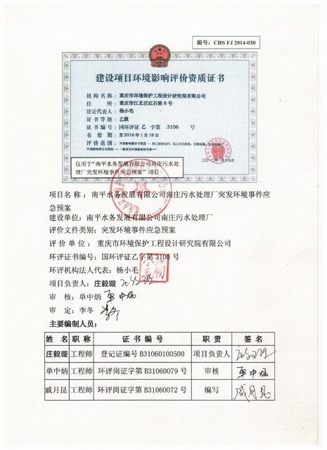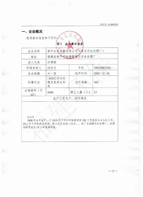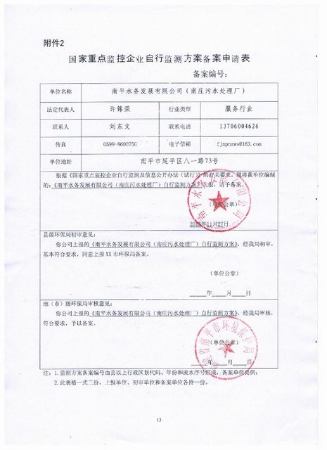 | 單位名稱 | 南平水務(wù)發(fā)展有限公司 | 法人代表 | 許錦榮 |