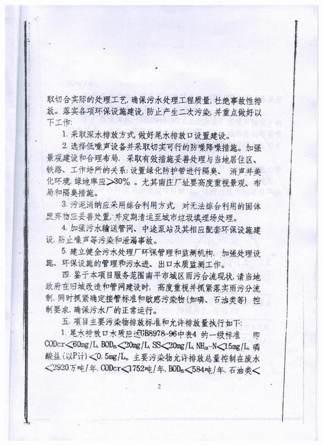 我公司所屬南莊污水處理廠處理南平市城區(qū)生活污水,執(zhí)行《城鎮(zhèn)污水處理廠污染物排放標(biāo)準(zhǔn)》GB18918-2002一級B排放標(biāo)準(zhǔn),目前南莊污水處理廠各類污染物治理設(shè)施穩(wěn)定運行,出水達(dá)標(biāo)排放。
