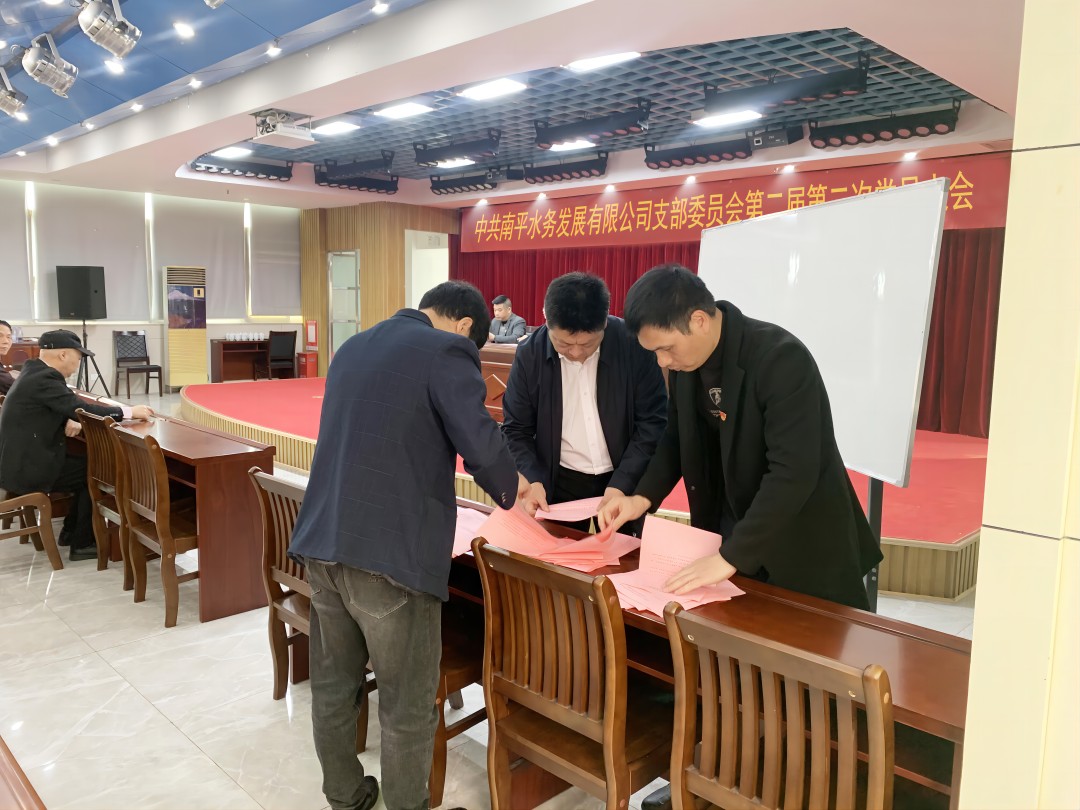之后按照規(guī)定程序,會(huì)上逐項(xiàng)審議并表決通過了《中共南平水務(wù)發(fā)展有限公司支部委員會(huì)選舉辦法(草案)》、支部委員會(huì)委員候選人名單及監(jiān)票人、計(jì)票人建議名單。按照選舉辦法,參會(huì)的正式黨員采取無記名投票,差額選舉增補(bǔ)了支部委員會(huì)委員3名。