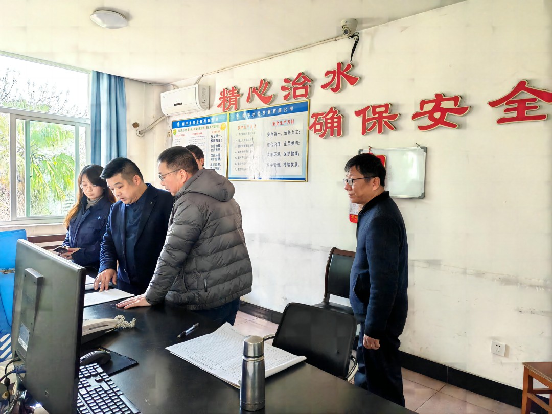大樓慰問(wèn)結(jié)束后,第一黨支部書記、董事長(zhǎng)王良文,第二黨支部書記、副總經(jīng)理康志萍、副總經(jīng)理敖慶夏等人組成的檢查組到安豐水廠、新建水廠等基層一線水廠開展節(jié)后復(fù)工復(fù)產(chǎn)檢查。檢查組一行逐一檢查了水廠的各個(gè)關(guān)鍵供水設(shè)施設(shè)備,包括泵站、管網(wǎng)、加壓站等,現(xiàn)場(chǎng)解決三項(xiàng)技術(shù)難題。
