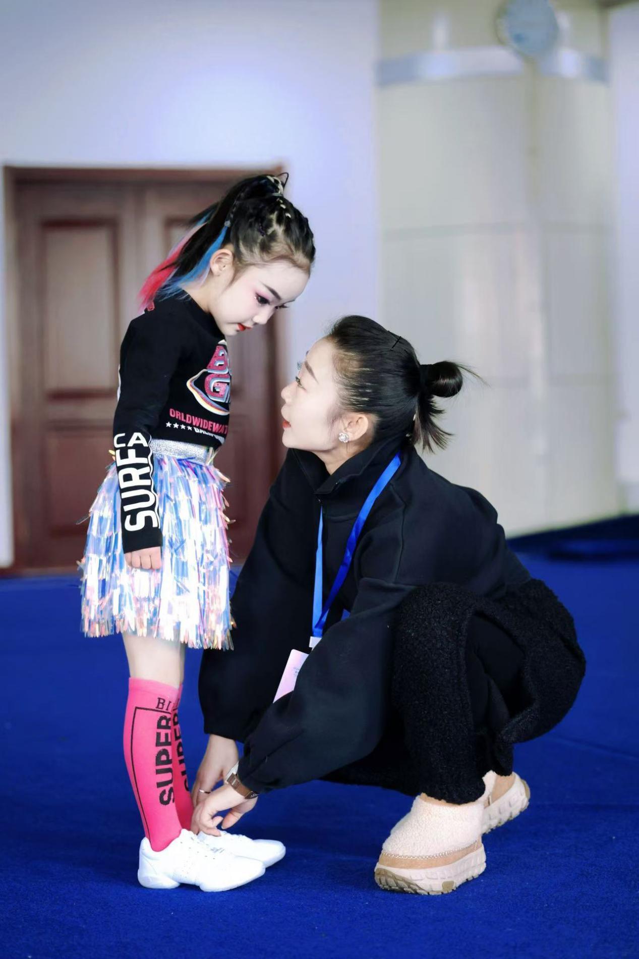 2017年8月,申忱正式入職哈爾濱市繼紅小學,同年9月便牽頭成立了“颯娃啦啦隊”。彼時的社團,沒有成熟的訓練體系,沒有豐富的參賽經(jīng)驗,甚至連固定的訓練場地都需臨時協(xié)調(diào),訓練和上課時間屢屢受限,前行之路布滿荊棘。但申忱從未動搖,她堅信啦啦操的力量,“啦啦操不僅是一項融合舞蹈、技巧的體育運動,更是培育孩子自信、團結(jié)與堅韌的重要載體,它所傳遞的‘更高、更快、更強、更團結(jié)’的奧林匹克精神,能讓孩子們受益終身,這也正是學校大力發(fā)展體育教育的初心?!?/p>