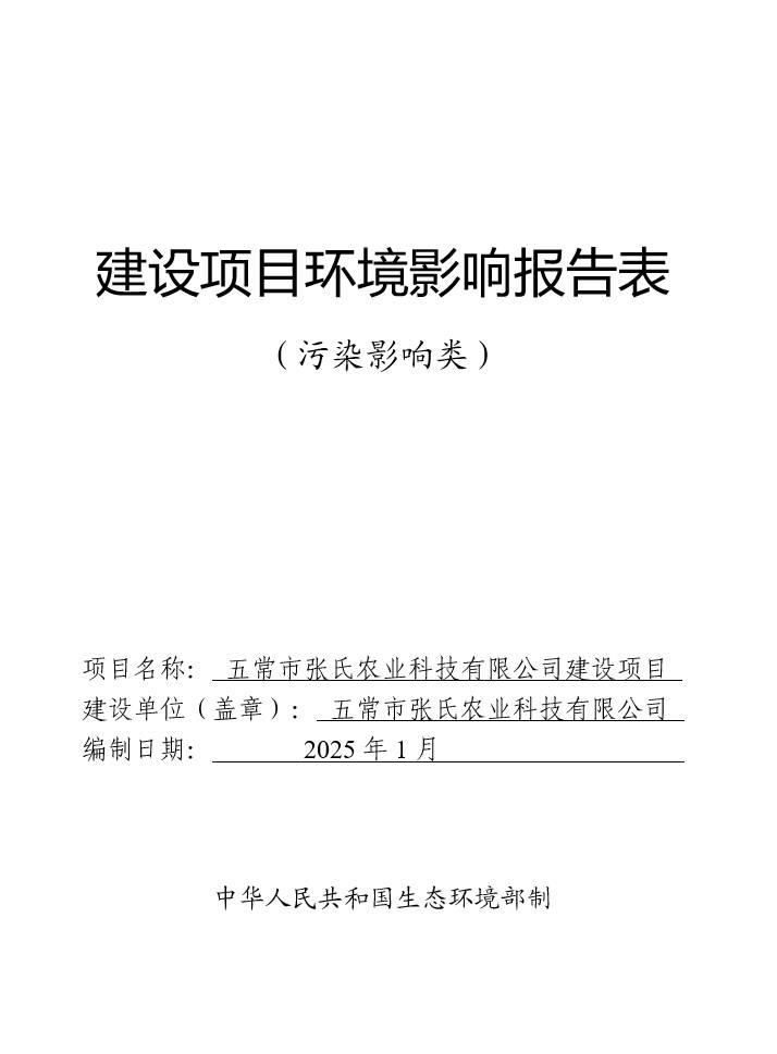 五常市張氏農(nóng)業(yè)科技有限公司建設(shè)項(xiàng)目環(huán)境影響報(bào)告表
